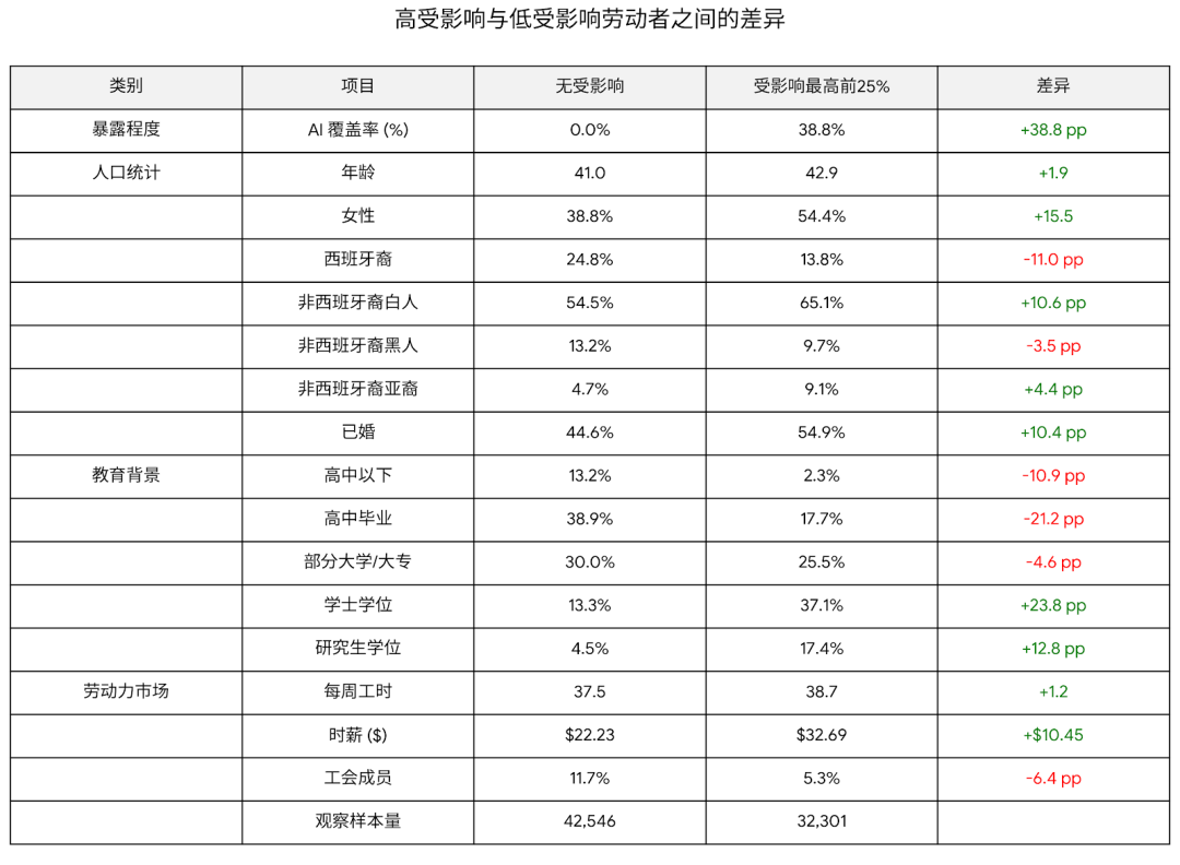 做者发觉,发觉两者之间存正在显著但不强烈的负相关关系。AI 带来的赋闲率变化也「取零没有统计上的显著差别」。比裁人更荫蔽。那么目前的 AI 有没有正在 ChatGPT 发布后导致大量的赋闲?这就是 Anthropic 的底气了,并没有。理论上的纯手艺替代,但正在程度最高的群体中占 17.4%,以渐进、分离、难以察觉的体例渗入!